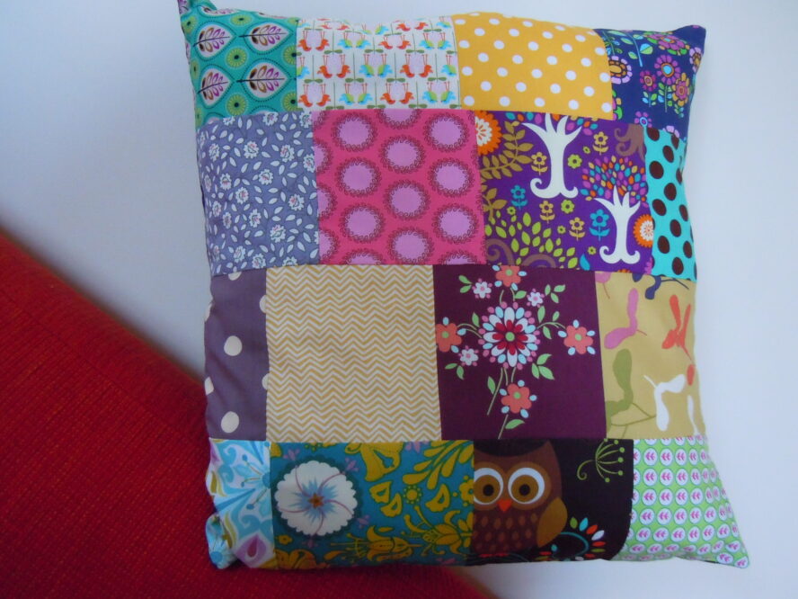 It may not have roses on kittens and rainbows on mittens (I think that’s how the song goes) but this cushion certainly does have a few of my favourite fabrics.